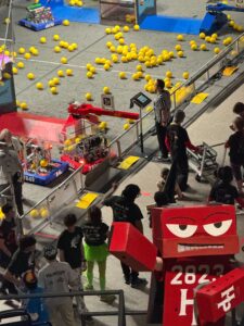 After a great Friday night blowing off steam at the Adventure Zone, we went into Saturday feeling confident. During alliance selections, we definitely had our eyes on a potential pick by Full Metal Jackets (Team 3297), as our scouting stats were good on them and Apparently one team member talked with them about picking us. While that pairing didn’t happen, we were thrilled to be chosen as the 2nd pick for an alliance led by Team 4778 (StormBots) and joined by Team 4009 (DNA). We played hard, but after some intense playoff rounds, our alliance finished in 5th place overall.